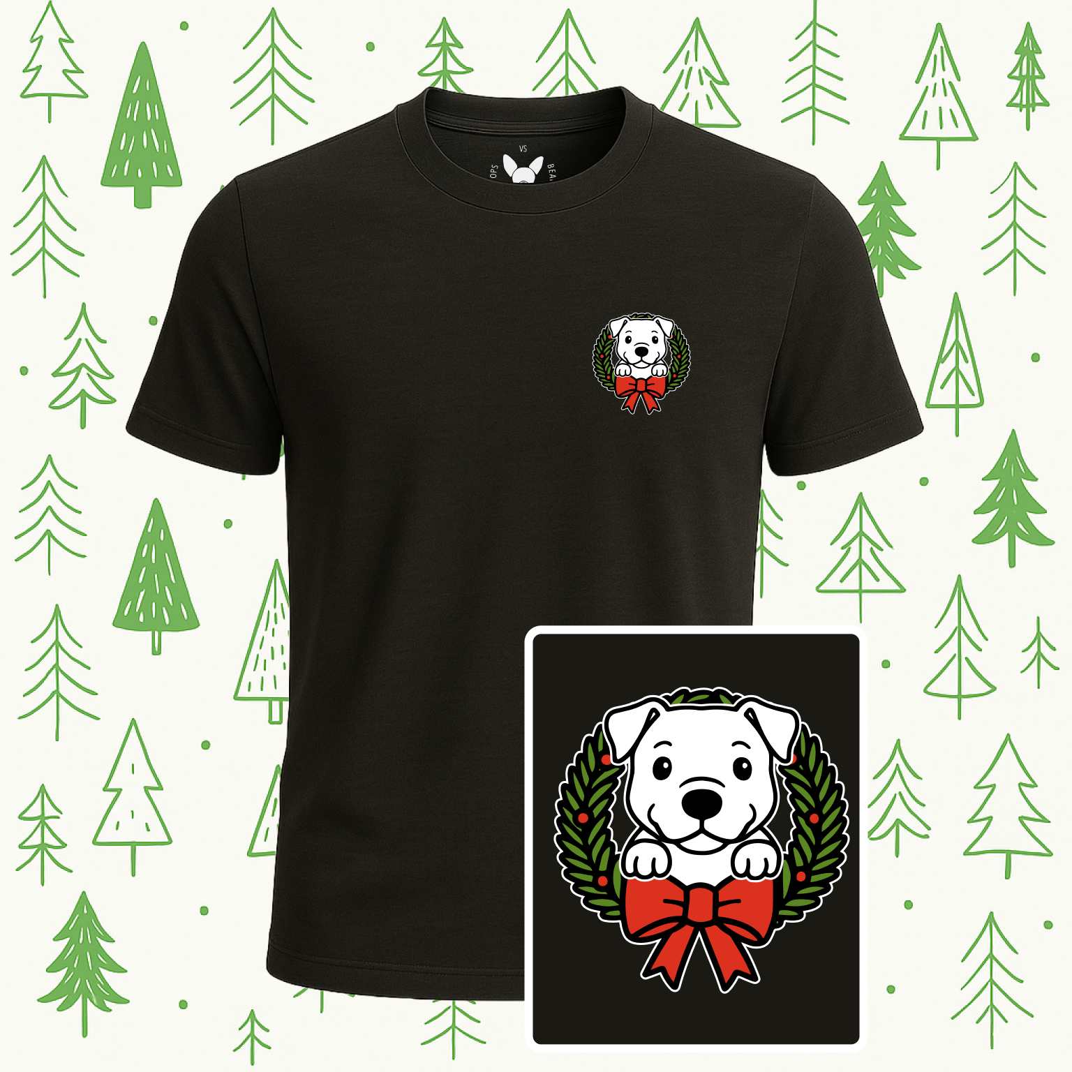A festive and playful tee featuring your favorite Boops Vs Beans pups surrounded by a holiday wreath and tied with a bright red bow. Perfect for dog lovers who want to share a little cheer through the season while keeping things casual and cozy.