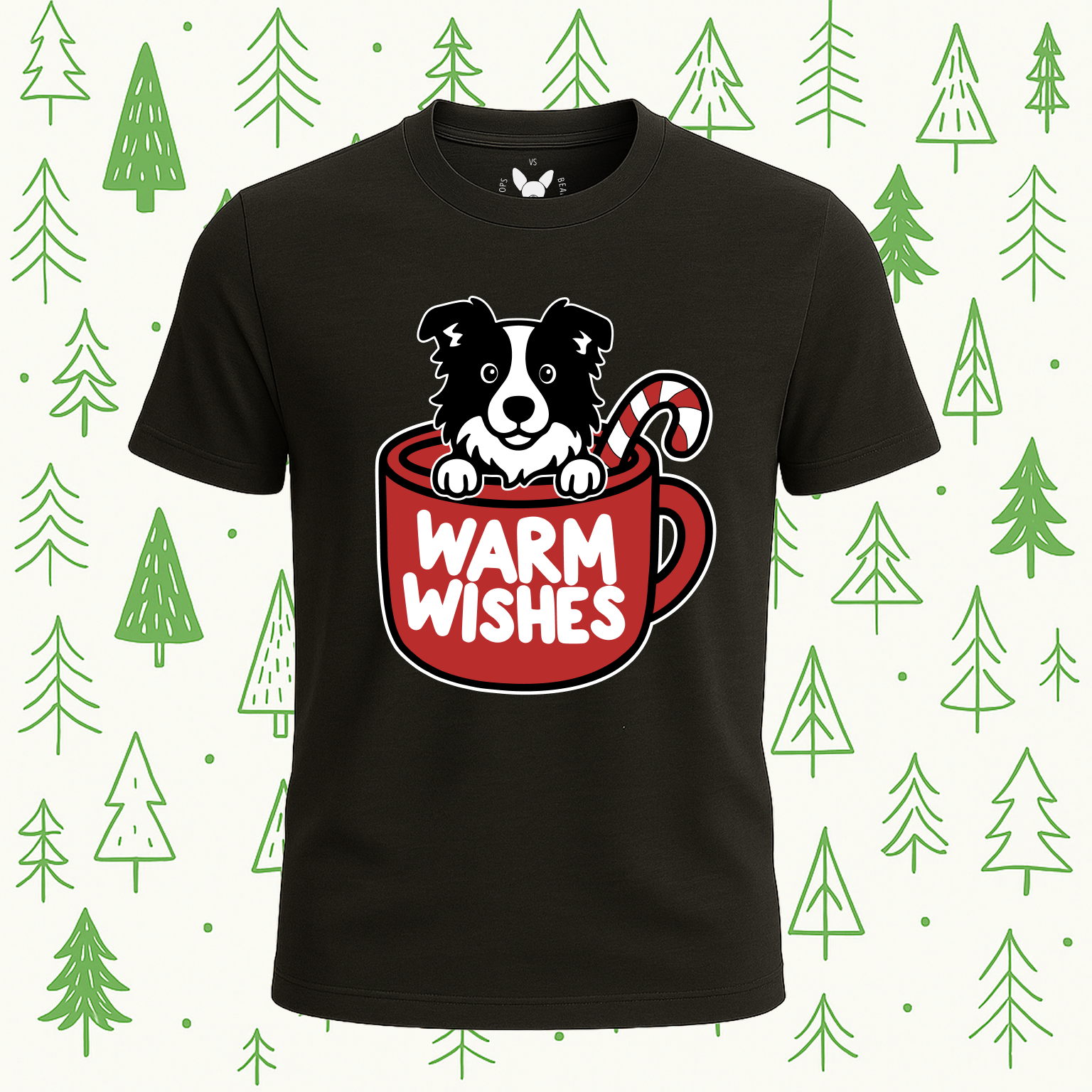 A cozy and festive tee featuring a cheerful Border Collie peeking out from a giant holiday mug filled with warm wishes. Perfect for dog lovers who want to spread good vibes all season long, whether you’re sipping coffee, walking your pup, or lounging at home.