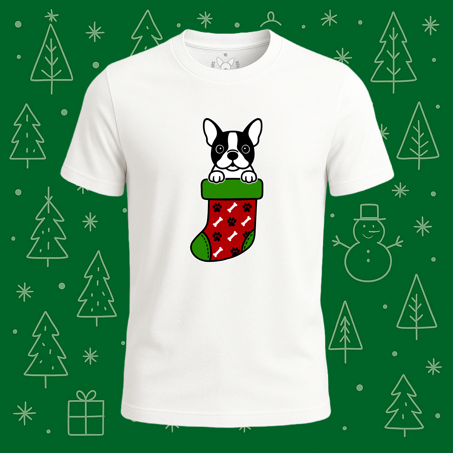 Boston Terrier Christmas Stocking Tee - Feature Print