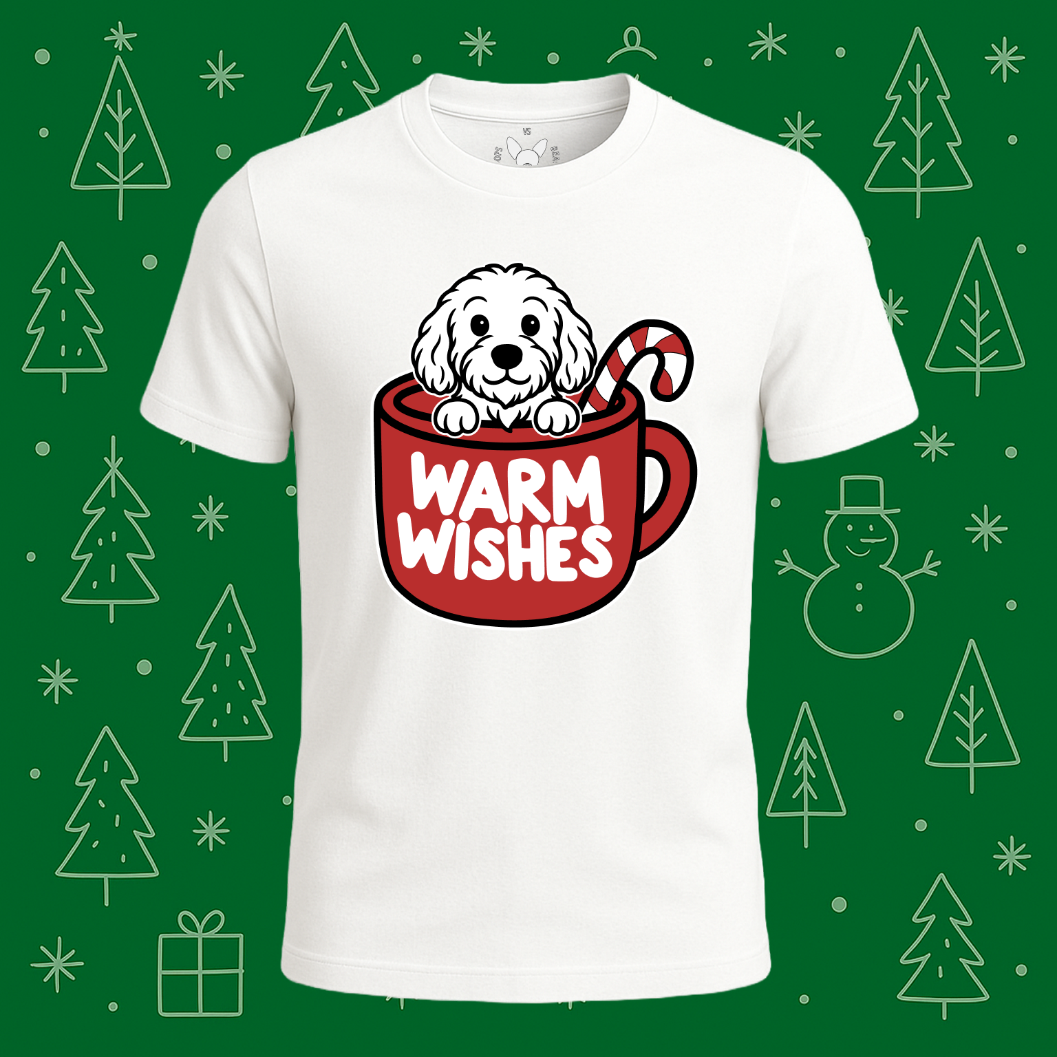 A cozy and festive tee featuring a cheerful Cockapoo peeking out from a giant holiday mug filled with warm wishes. Perfect for dog lovers who want to spread good vibes all season long, whether you’re sipping coffee, walking your pup, or lounging at home.