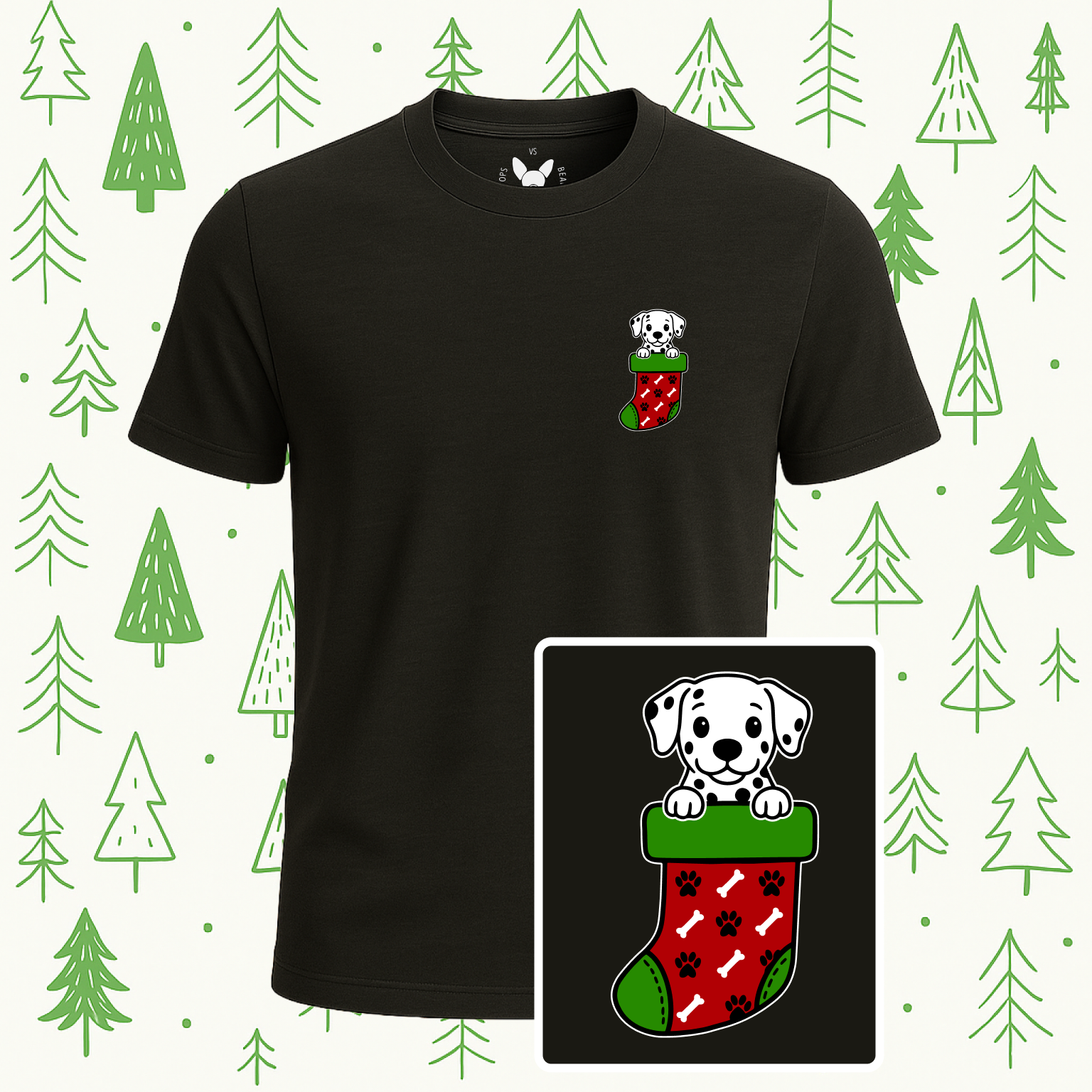 Sweet, snuggly, and full of seasonal charm, this tee features your favorite Boops Vs Beans pup peeking out of a festive holiday stocking decorated with adorable dog-themed patterns. From little paw prints to tiny bones, the design gives the classic stocking a playful, pup-approved twist that makes you instantly feel the warmth of the season