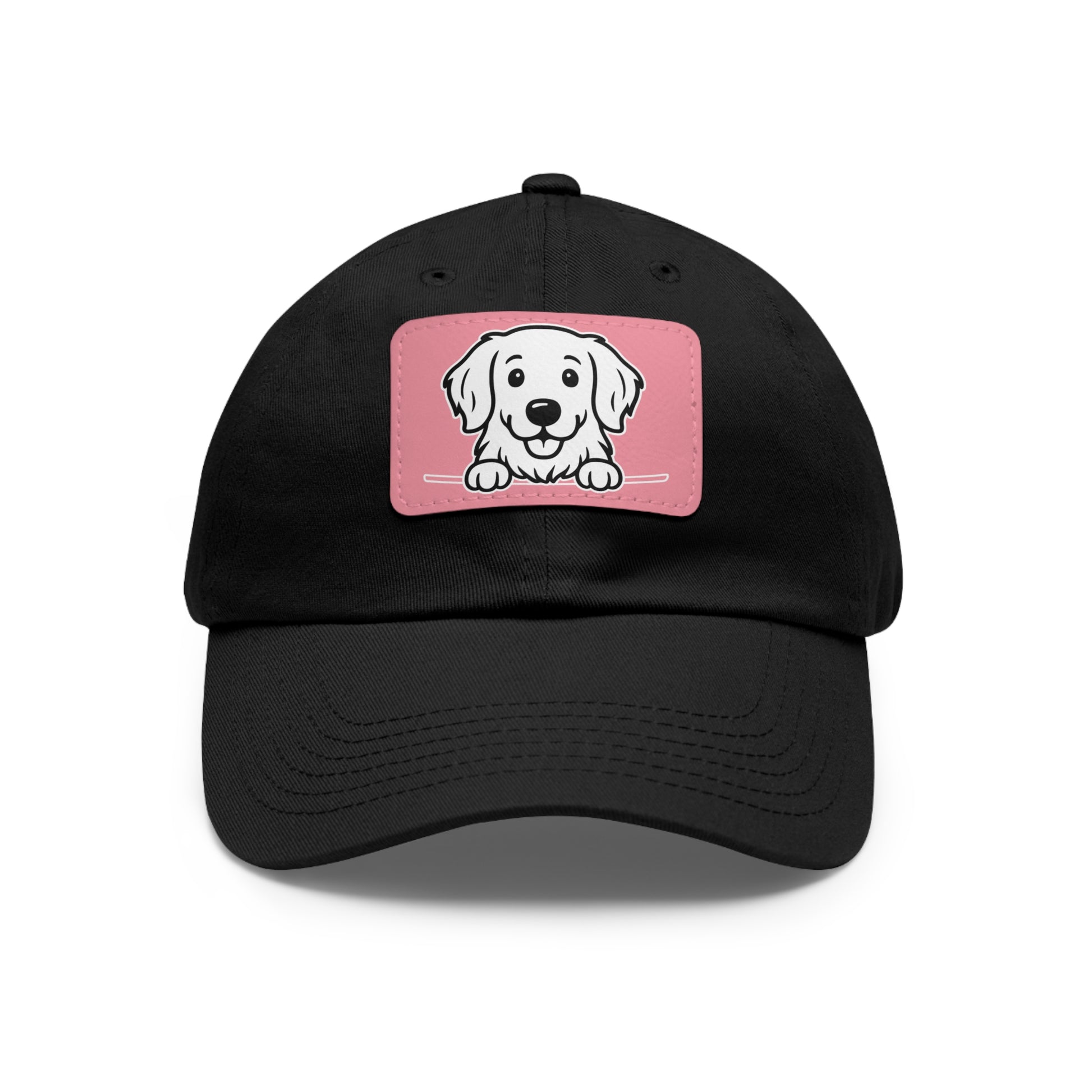 A relaxed and comfortable dad hat with a faux leather patch featuring a Golden Retriever design. Perfect for Golden Retriever lovers and dog owners who want a versatile accessory that adds a cool, casual touch to any outfit. Ideal for walks, weekend outings, and everyday wear.