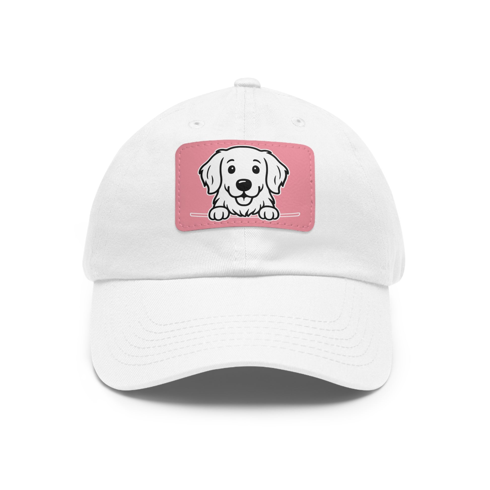 A relaxed and comfortable dad hat with a faux leather patch featuring a Golden Retriever design. Perfect for Golden Retriever lovers and dog owners who want a versatile accessory that adds a cool, casual touch to any outfit. Ideal for walks, weekend outings, and everyday wear.