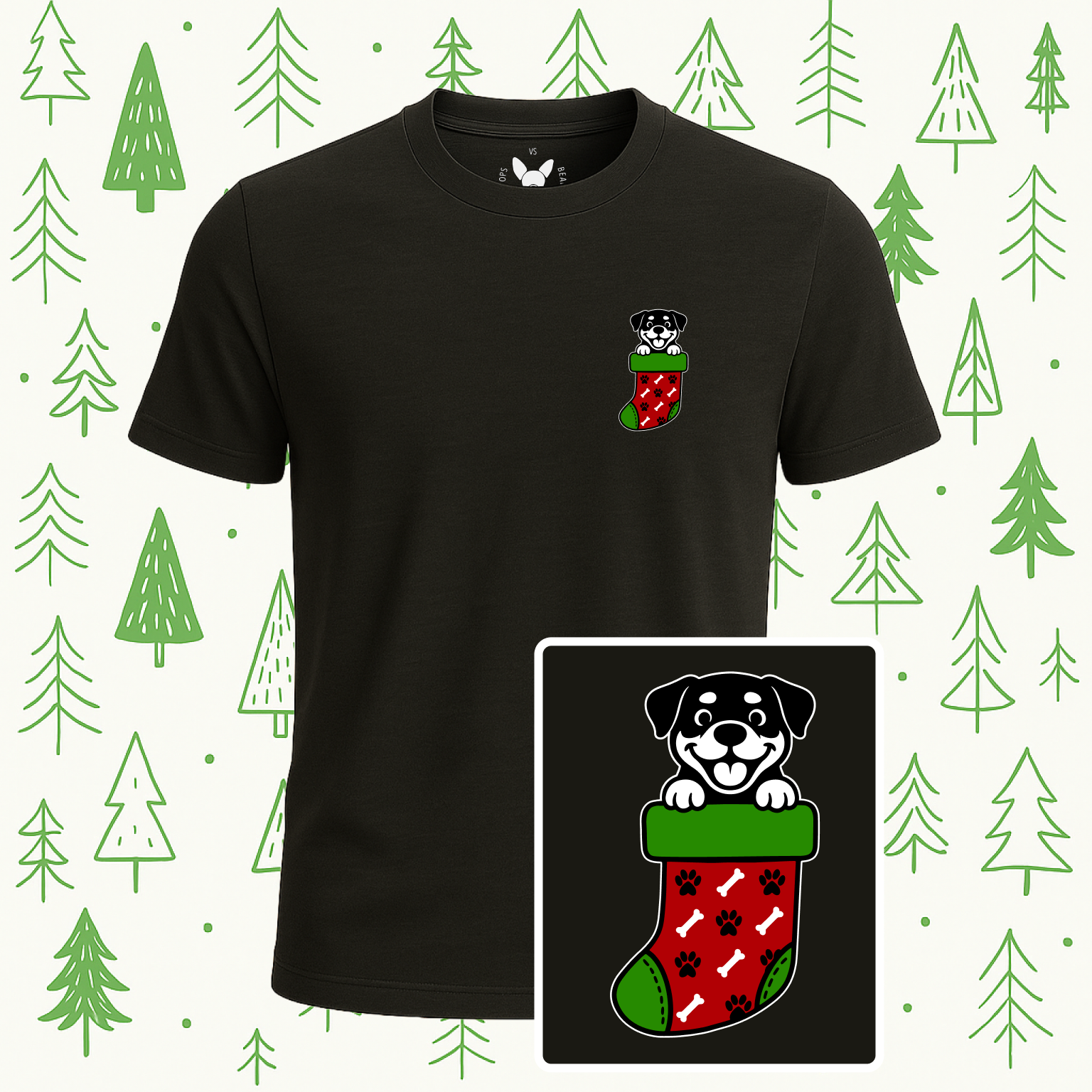 Sweet, snuggly, and full of seasonal charm, this tee features your favorite Boops Vs Beans pup peeking out of a festive holiday stocking decorated with adorable dog-themed patterns. From little paw prints to tiny bones, the design gives the classic stocking a playful, pup-approved twist that makes you instantly feel the warmth of the season