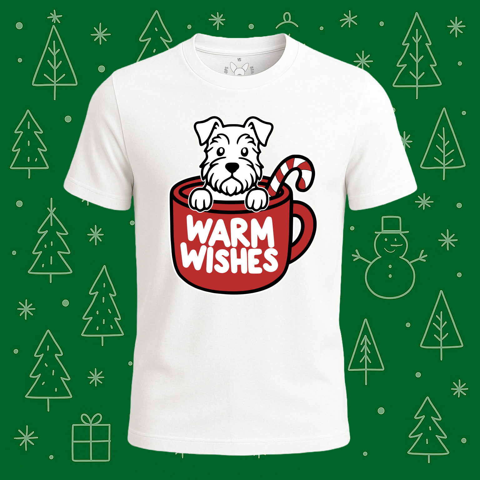 A cozy and festive tee featuring a cheerful Schnauzer peeking out from a giant holiday mug filled with warm wishes. Perfect for dog lovers who want to spread good vibes all season long, whether you’re sipping coffee, walking your pup, or lounging at home.