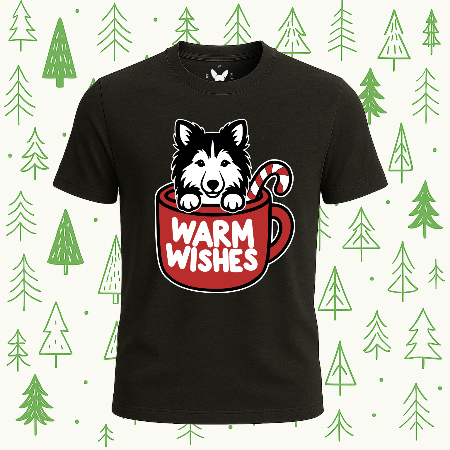 A cozy and festive tee featuring a cheerful Shetland Sheepdog (Sheltie) peeking out from a giant holiday mug filled with warm wishes. Perfect for dog lovers who want to spread good vibes all season long, whether you’re sipping coffee, walking your pup, or lounging at home.